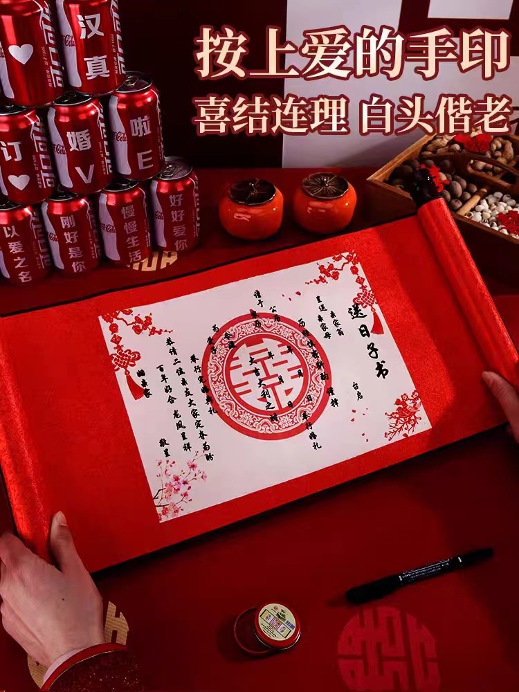 Rolling Vowels Marriage Contract Handwritten Chinese Sending Date Dowry Booklet Book Sticking Engagement Supplies Wholesale