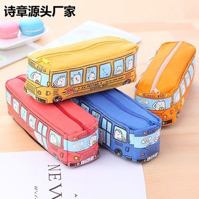 Children's Stationery Bus Pen Bag for Primary School Students, Gift Car Pencil Case, Korean Version Cute Bus Canvas Pen Box Bag