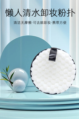 跨境專供懶人清水洗臉潔面撲卸妝粉撲加厚圓形絨毛洗臉撲卸妝棉