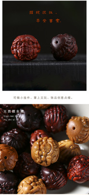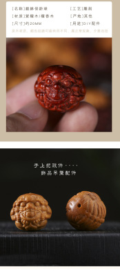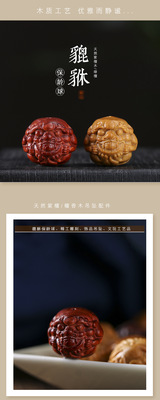 Zitan Sandalwood DIY Carving Heaven and Earth Hole Píxiū Bowling Ball Phone Chain Keychain Pendant Accessory Craftsmanship