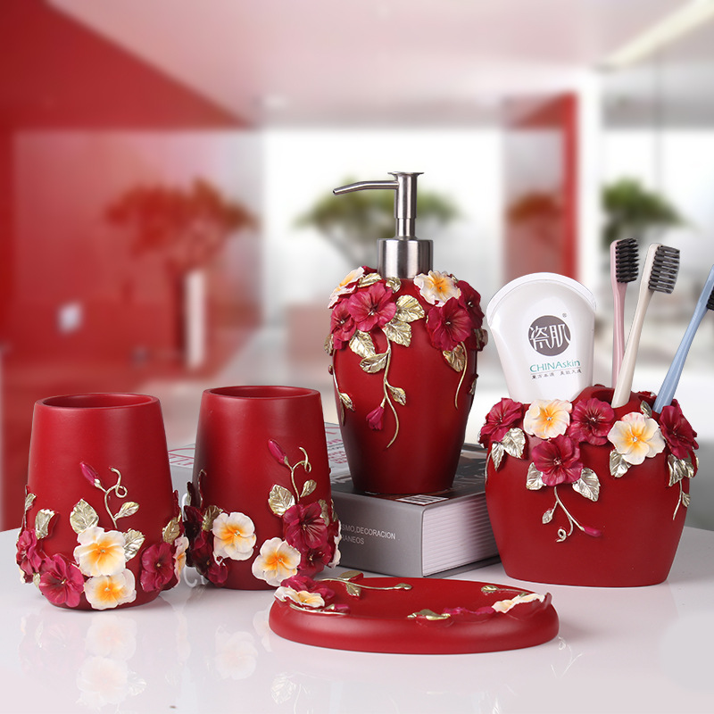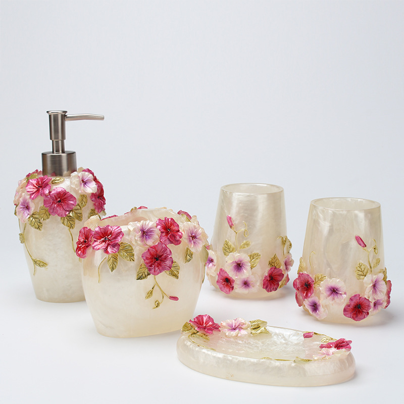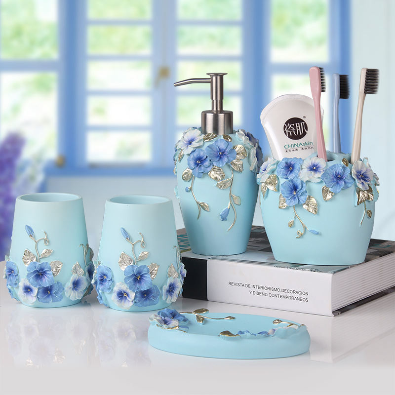 IYR7 Bathroom Five-Piece Set: Bath & Toiletry Essentials, Including Wash Cup, Toothbrush Holder, and Gargle Cup—Perfect Gift for Weddings, New Marriages, or Housewarming Celebrations
