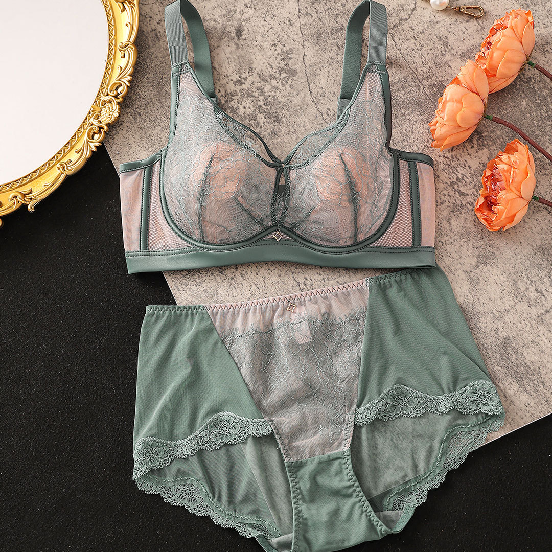 Xianzhimei 8360 large breast slimming ultra-thin lace underwear set sexy push-up soft steel ring bra