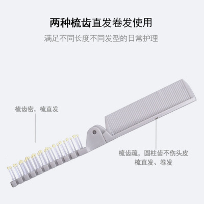 Folding comb, portable, small, two-in-one curling comb, anti-static, lady and children's mini travel comb
