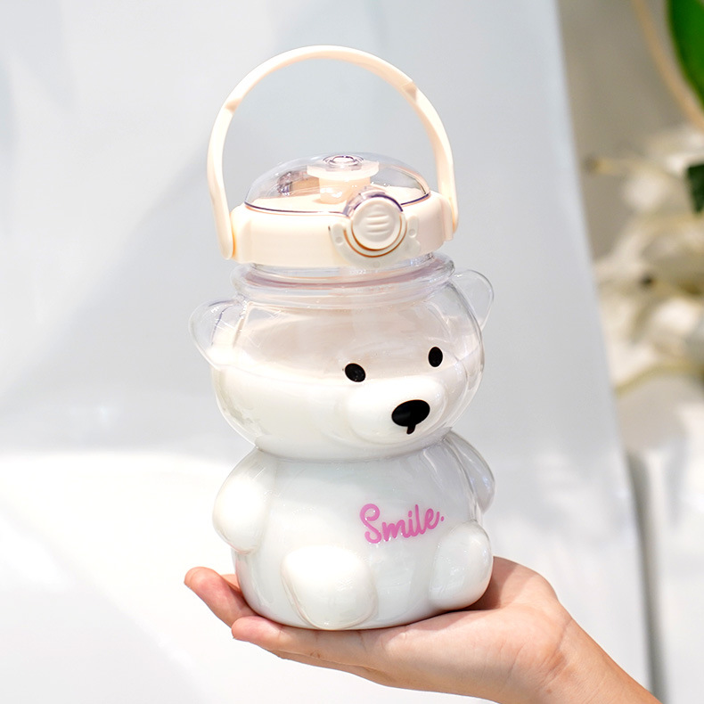網紅小熊水杯夏季高顏值大容量小熊大肚杯背帶便攜1000ml吸管杯