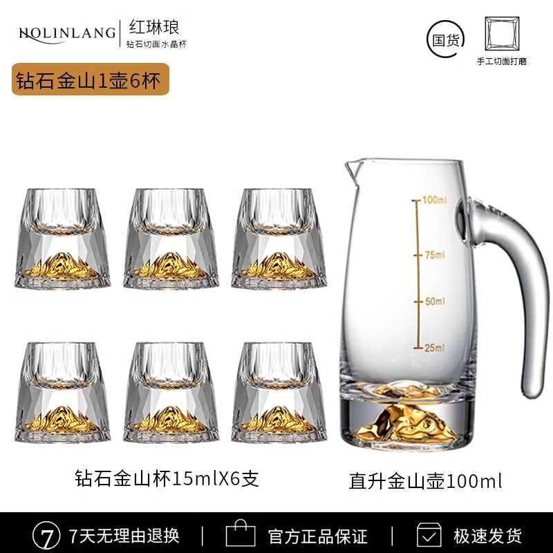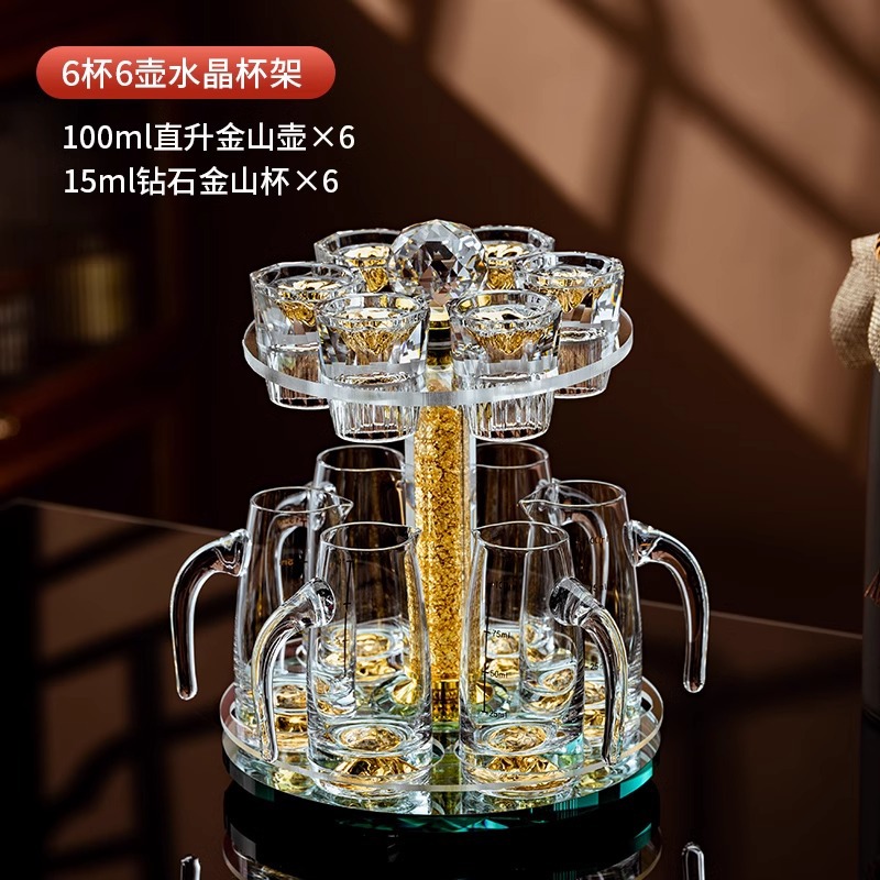 鑽石金山杯10mlX6+金山直升壺100mlX6+金箔水晶旋轉杯架