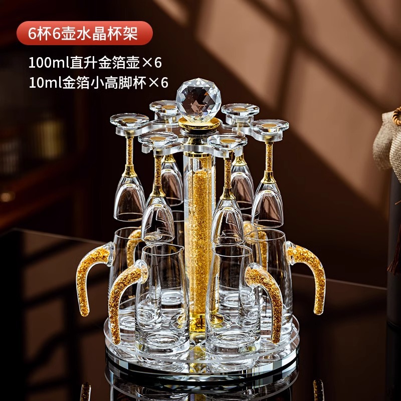 金箔小高杯10mlX6+金箔直升壺100mlX6+金箔水晶旋轉杯架