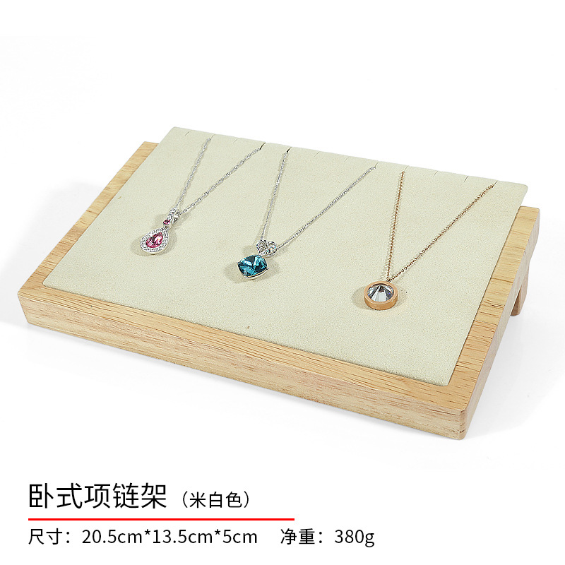 High-end solid wood and bamboo velvet necklace jewelry display and display stand set jade showcase decorative display rack and tray