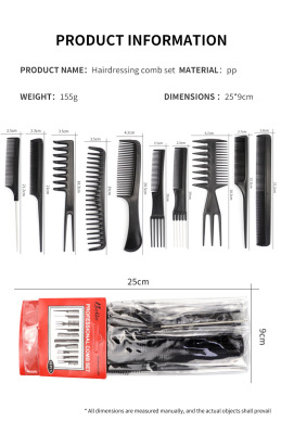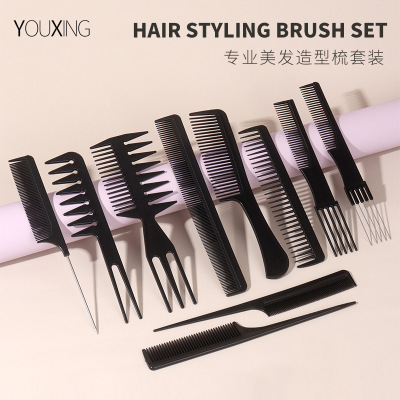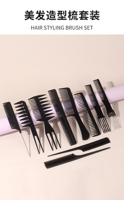 外貿高品質美發梳套裝專業造型梳鋼針尖尾梳寬齒梳髮廊理髮梳10支