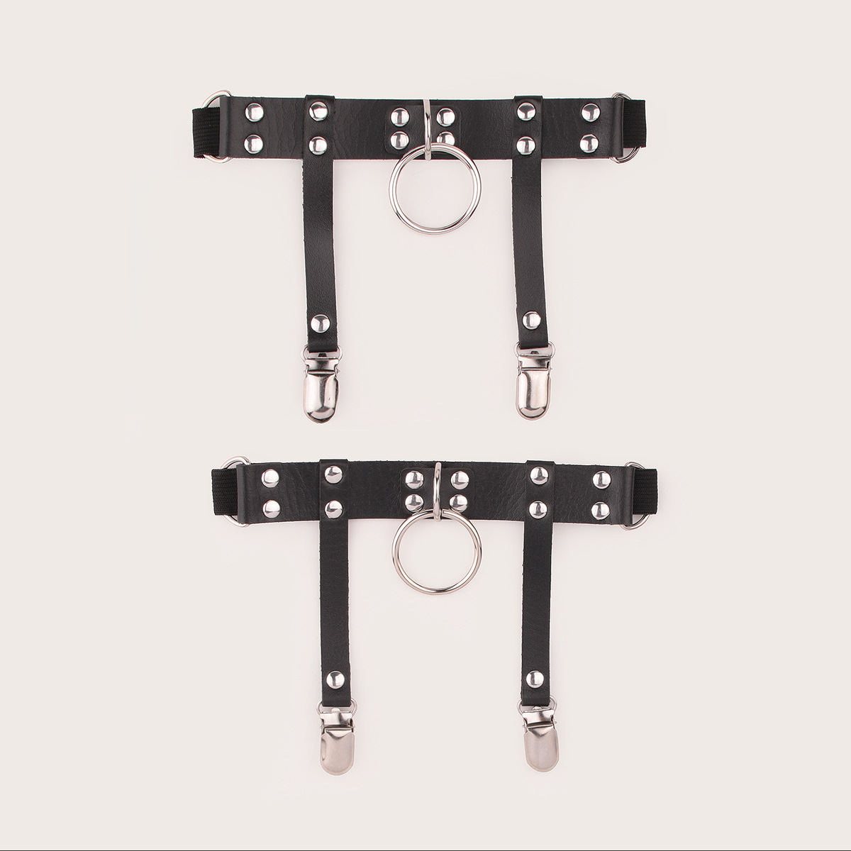 Manufacturer of stylish women's leg rings and stockings straps featuring metal and leather with a punk, circle, Y2K, and hot girl aesthetic