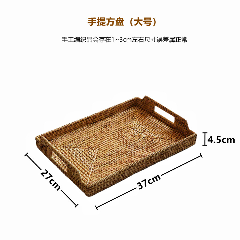 越南真藤編茶托盤手工編織盤北歐日式手提盤桌面收納籃筐中式托盤
