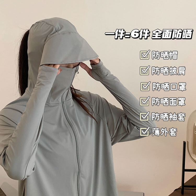夏季大帽檐黑膠帽檐防曬衣女皮膚衣防紫外線冰絲長袖披肩防曬服
