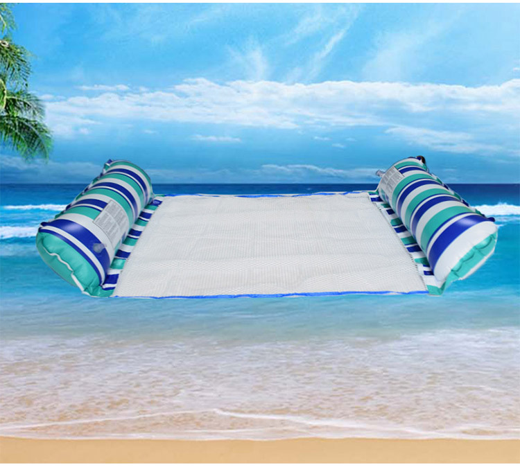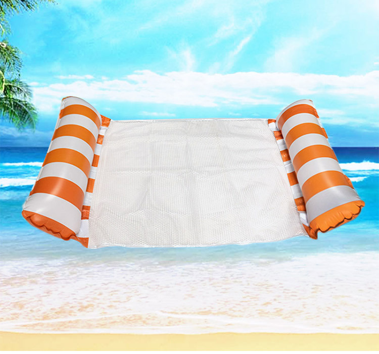 跨境便攜可摺疊PVC四管條紋水上玩具躺椅帶吊網浮床單人充氣浮排
