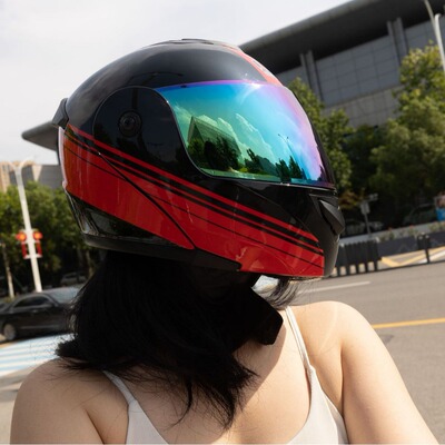 Orz電動車頭盔雙鏡片揭面盔全盔賽車頭盔跑盔男女通用雙用頭盔
