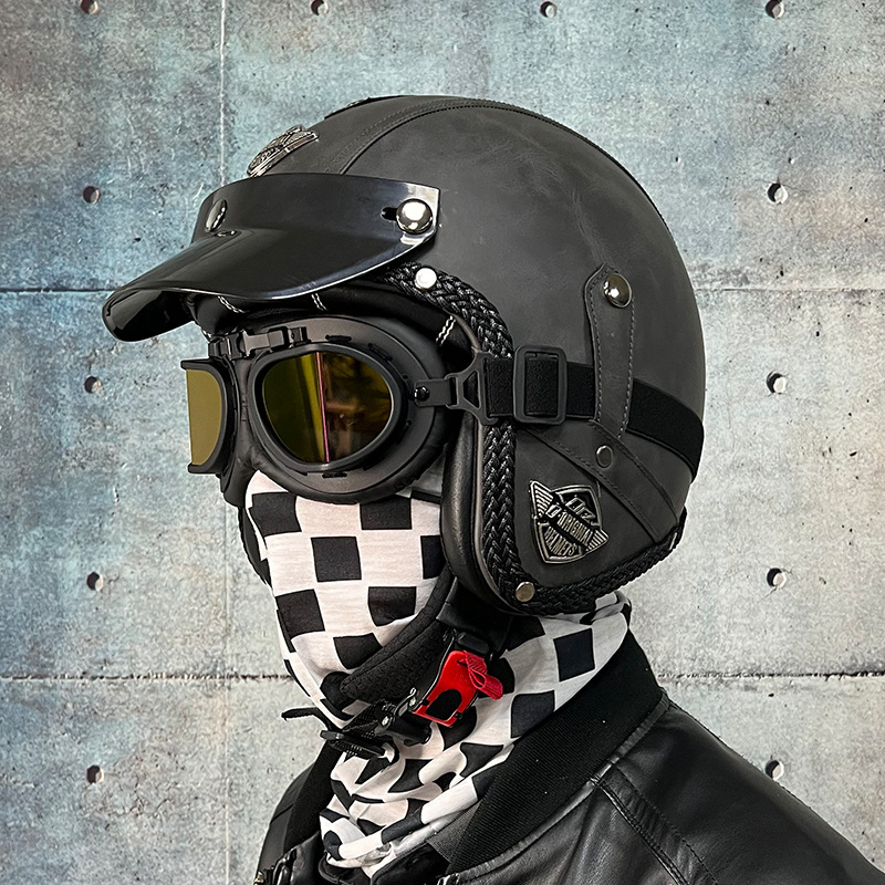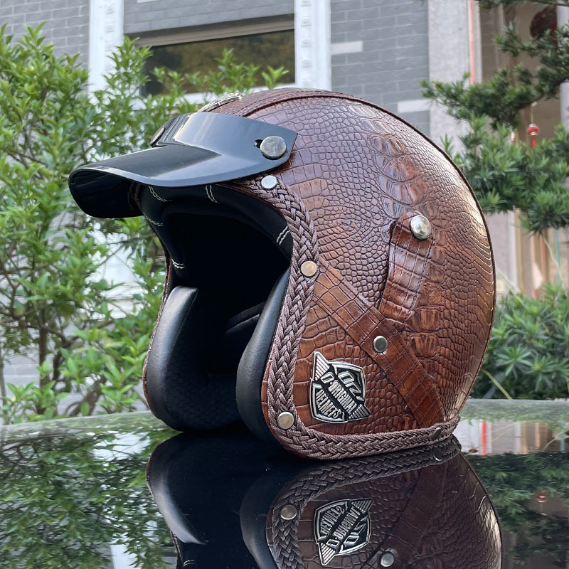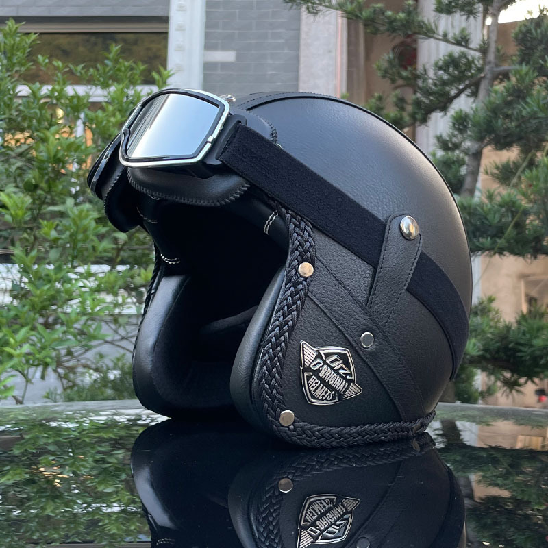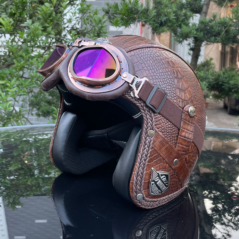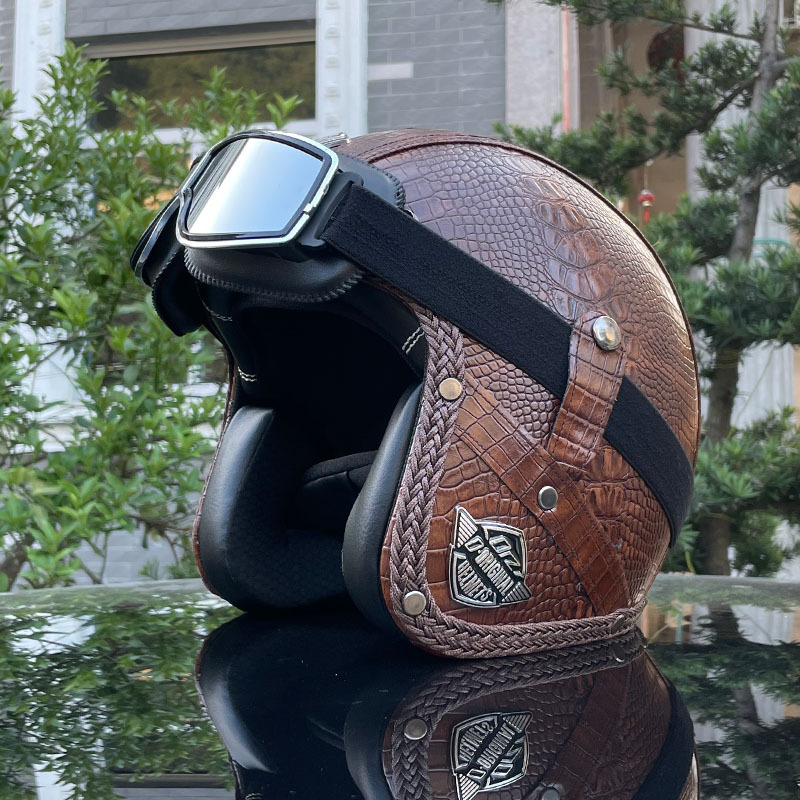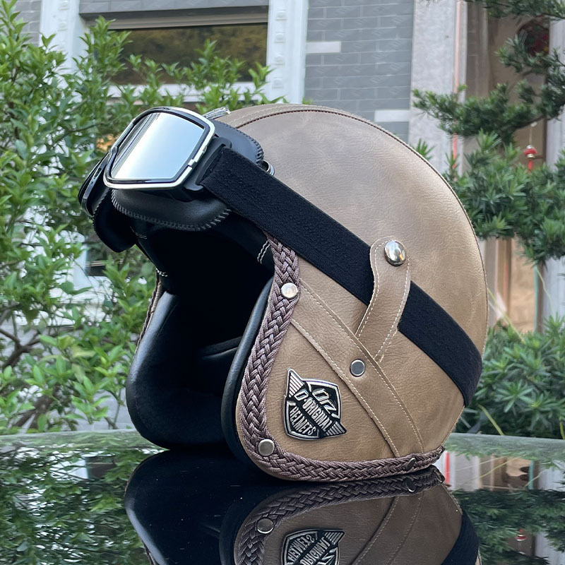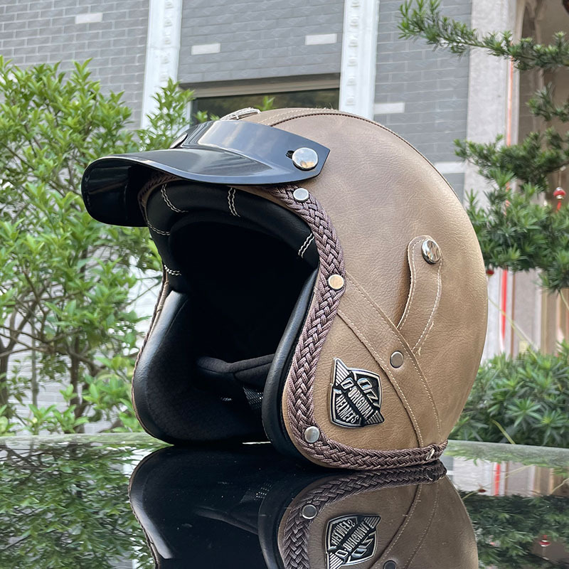 3C certified Harley motorcycle helmet men's and women's retro motorcycle hat handmade leather 3/4 helmet electric bike hat