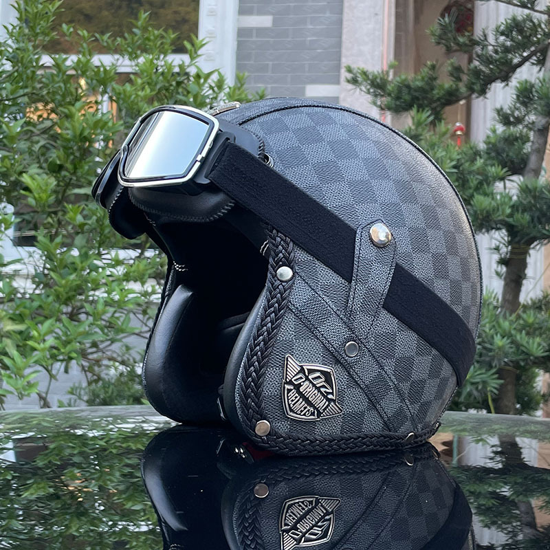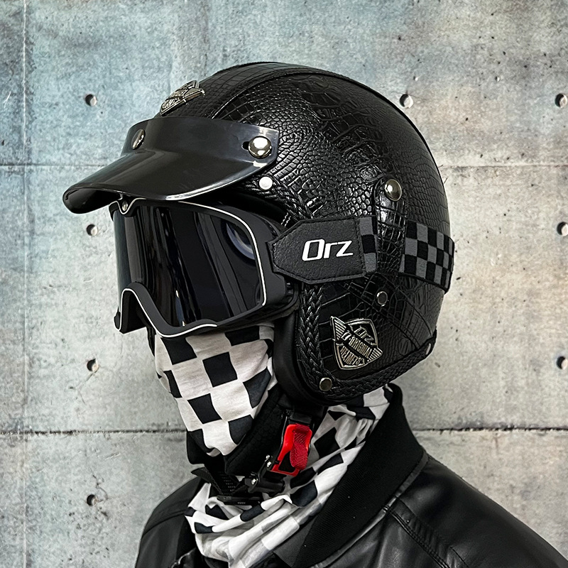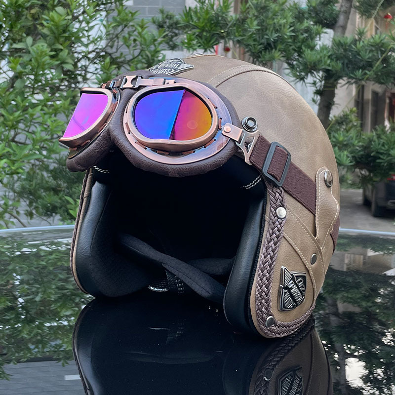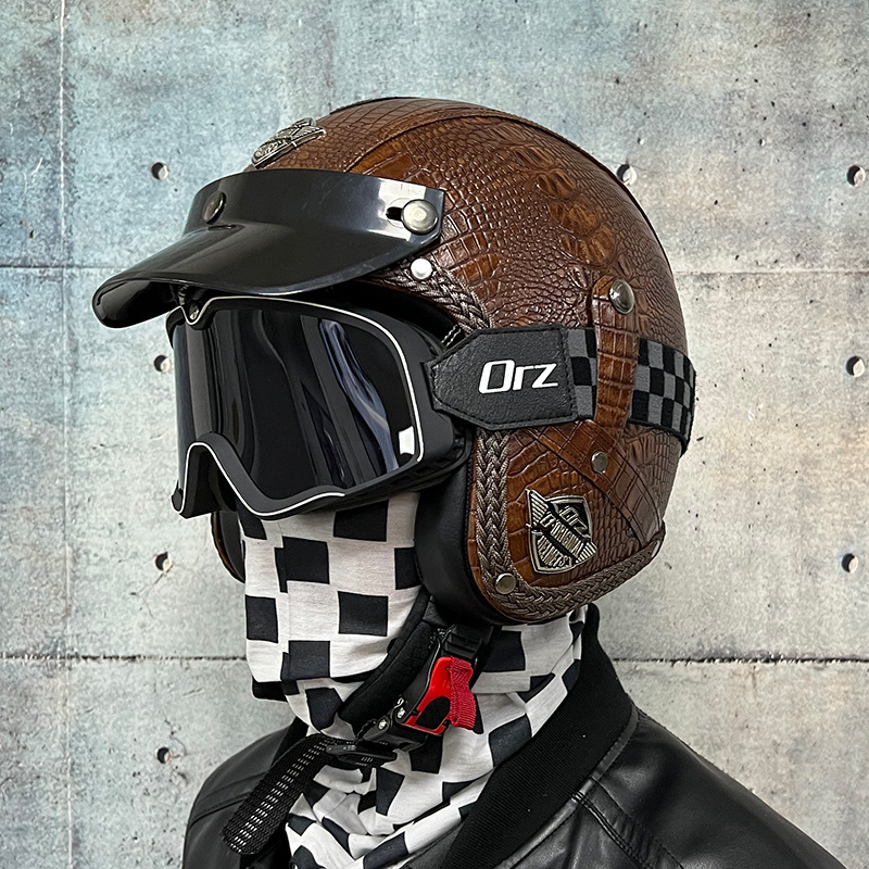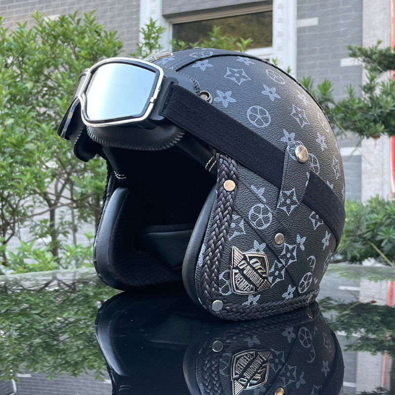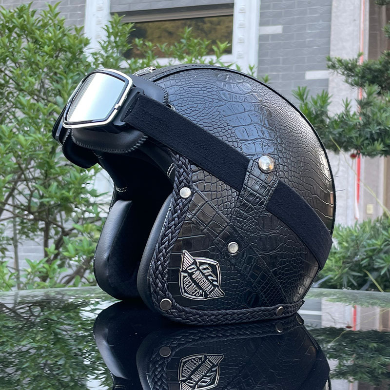 3C certified Harley motorcycle helmet men's and women's retro motorcycle hat handmade leather 3/4 helmet electric bike hat