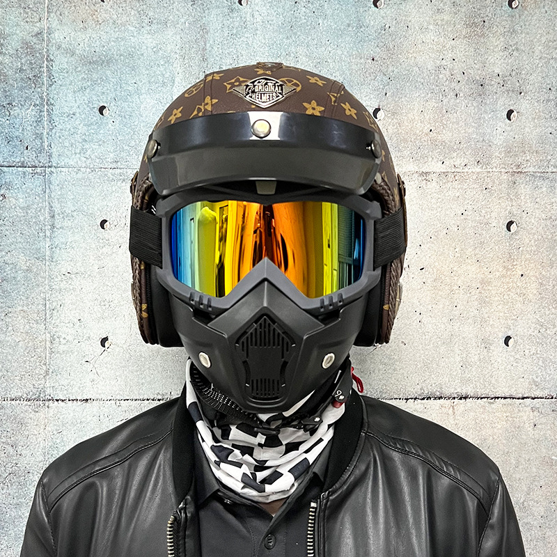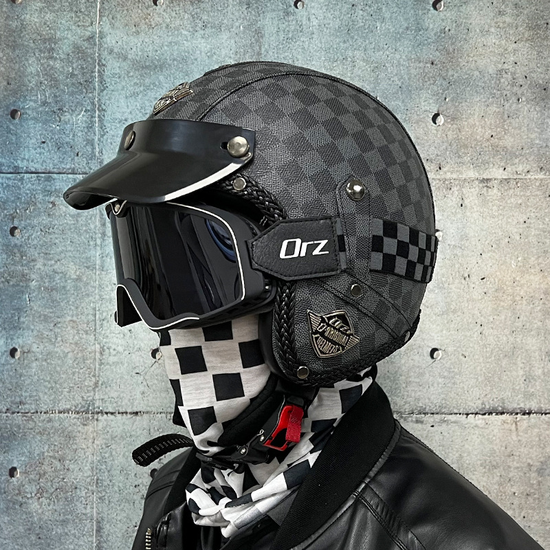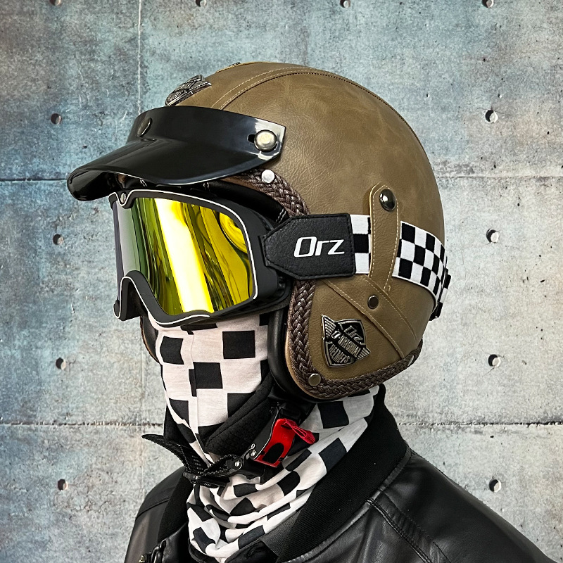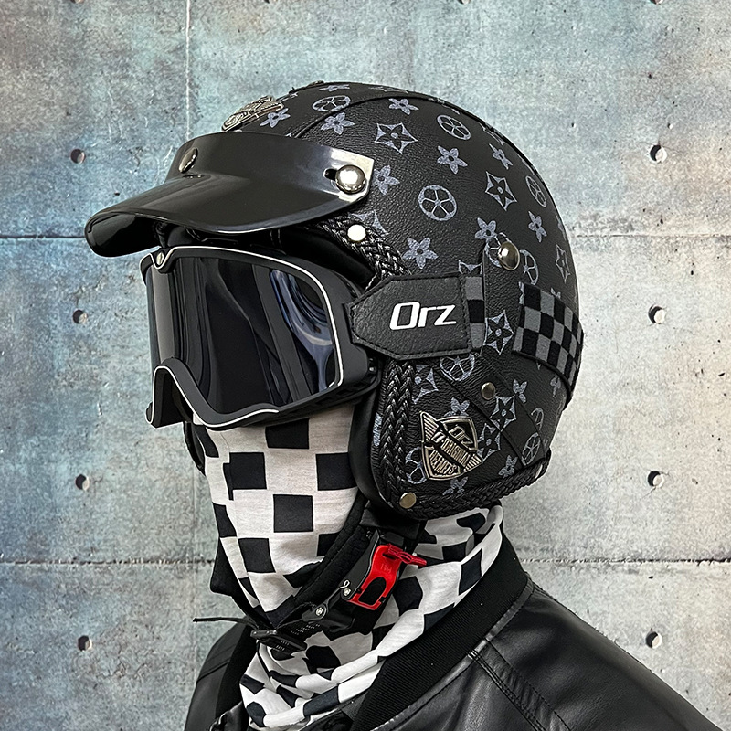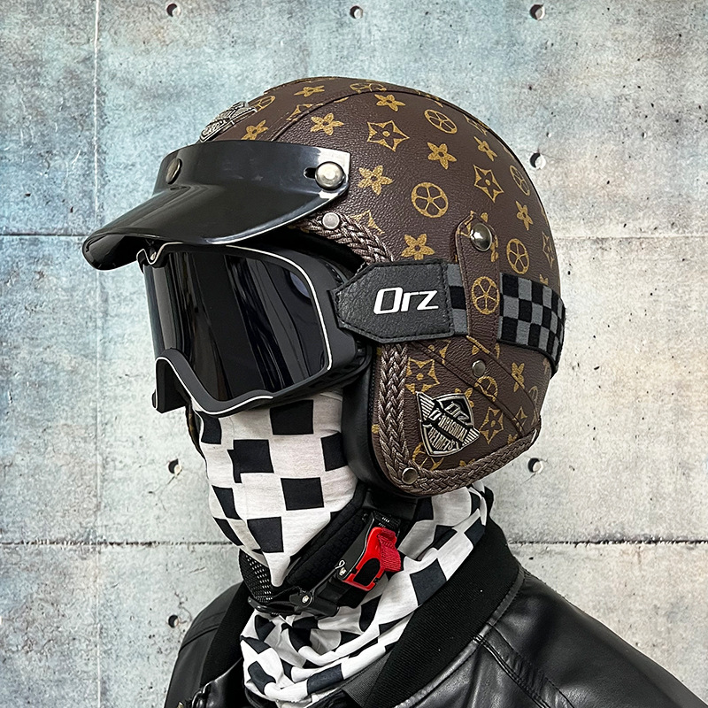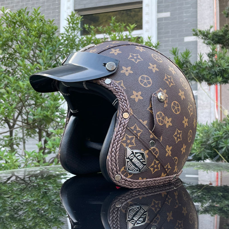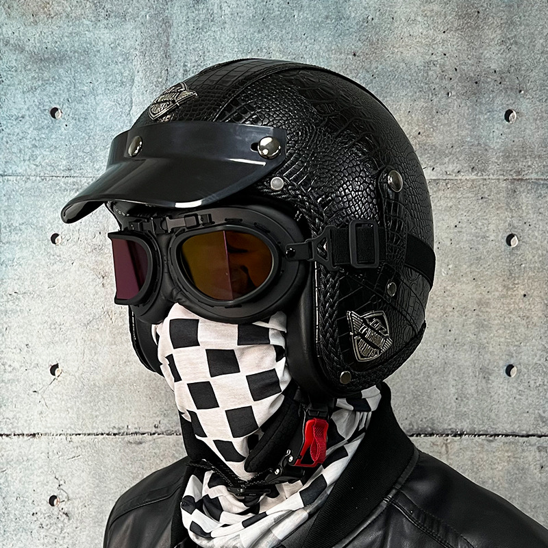 3C certified Harley motorcycle helmet men's and women's retro motorcycle hat handmade leather 3/4 helmet electric bike hat