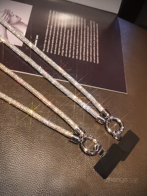 產品編號:斜挎款【銀色】滿鑽粗掛繩+升級款金屬夾片