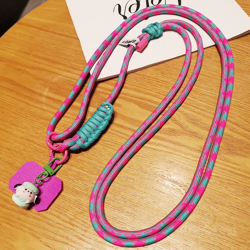 手機掛繩斜挎長款手工π字編織結背帶掛脖女ins簡約時尚卡通吊墜