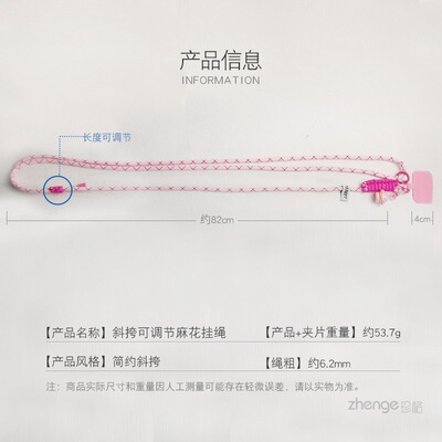 規格支持圖片上傳:斜挎款【粉玫紋】手工π字編織結掛繩+粉色夾片+吊墜