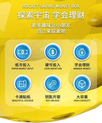 New rocket astronaut piggy bank cartoon sticker manual coin slot coin-operated children's savings bank toy