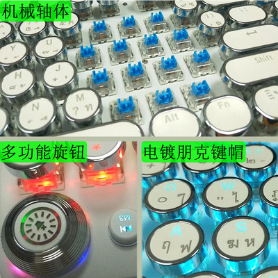 Vintage Round Steampunk Tactile Mechanical Keyboard with Rotary Knob, Shopee Lazada, Thailand Exclusive
