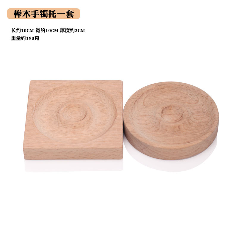 A set of round and square elm wood bracelet stands