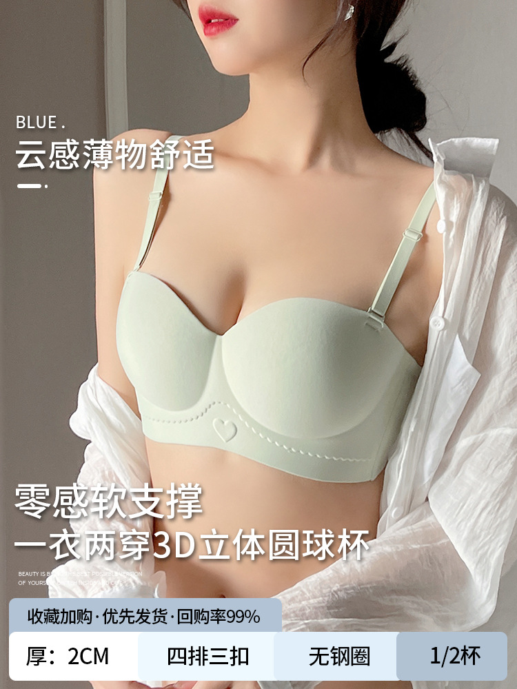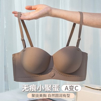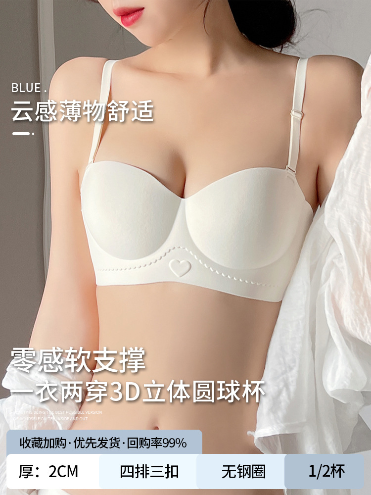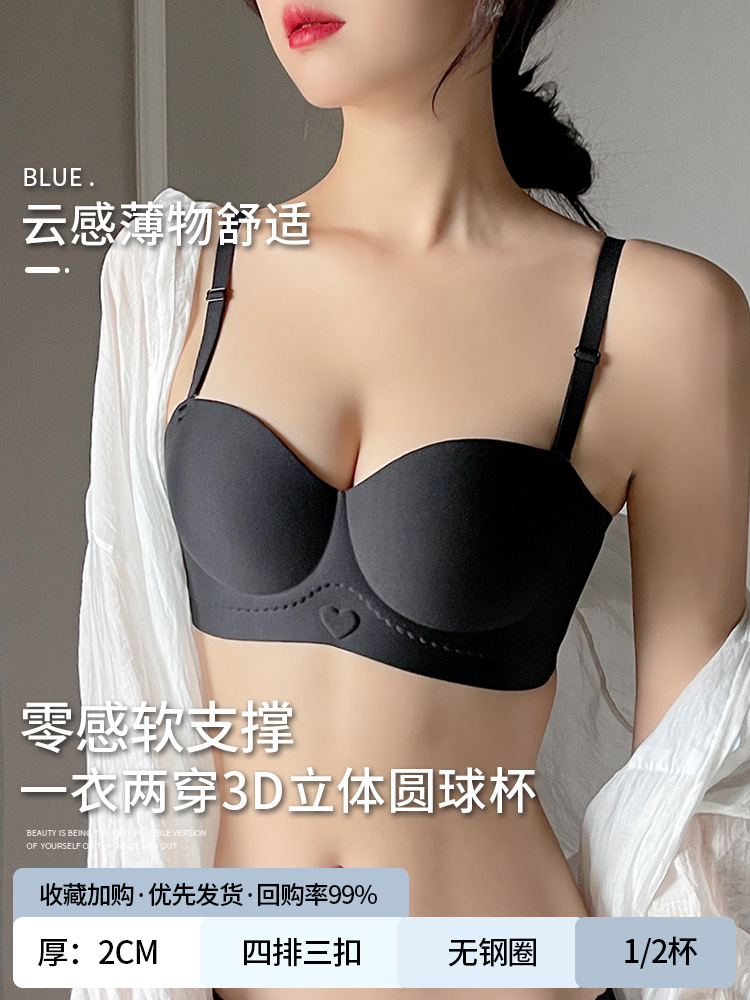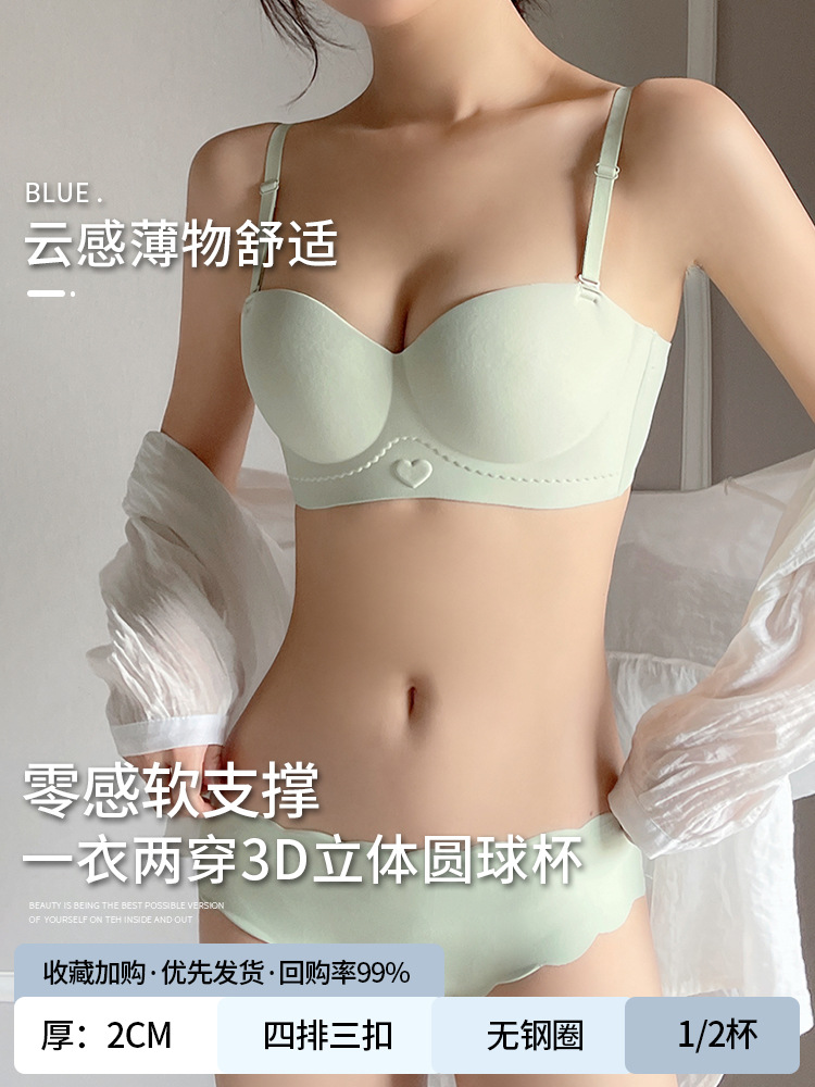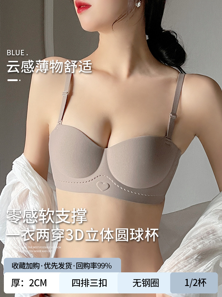 Red tube top bra for women with small breasts gathered to make them look bigger and larger, non-slip half cup seamless bra set for the year of birth