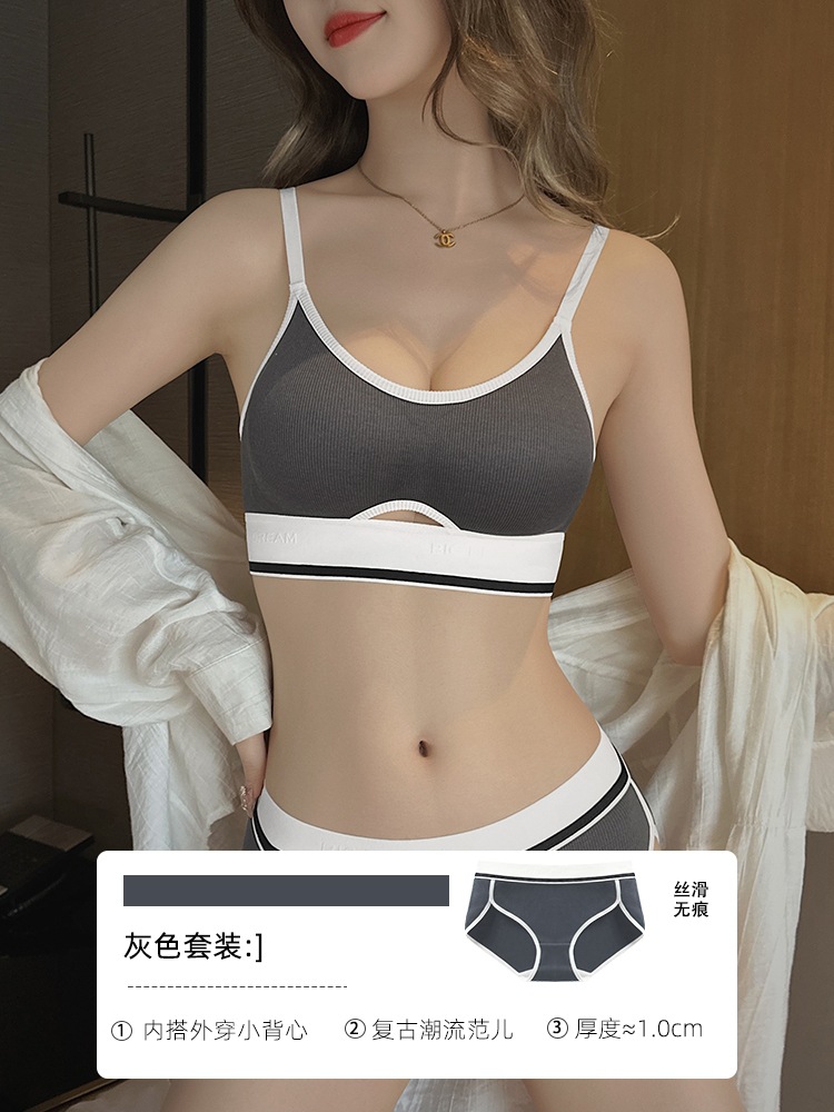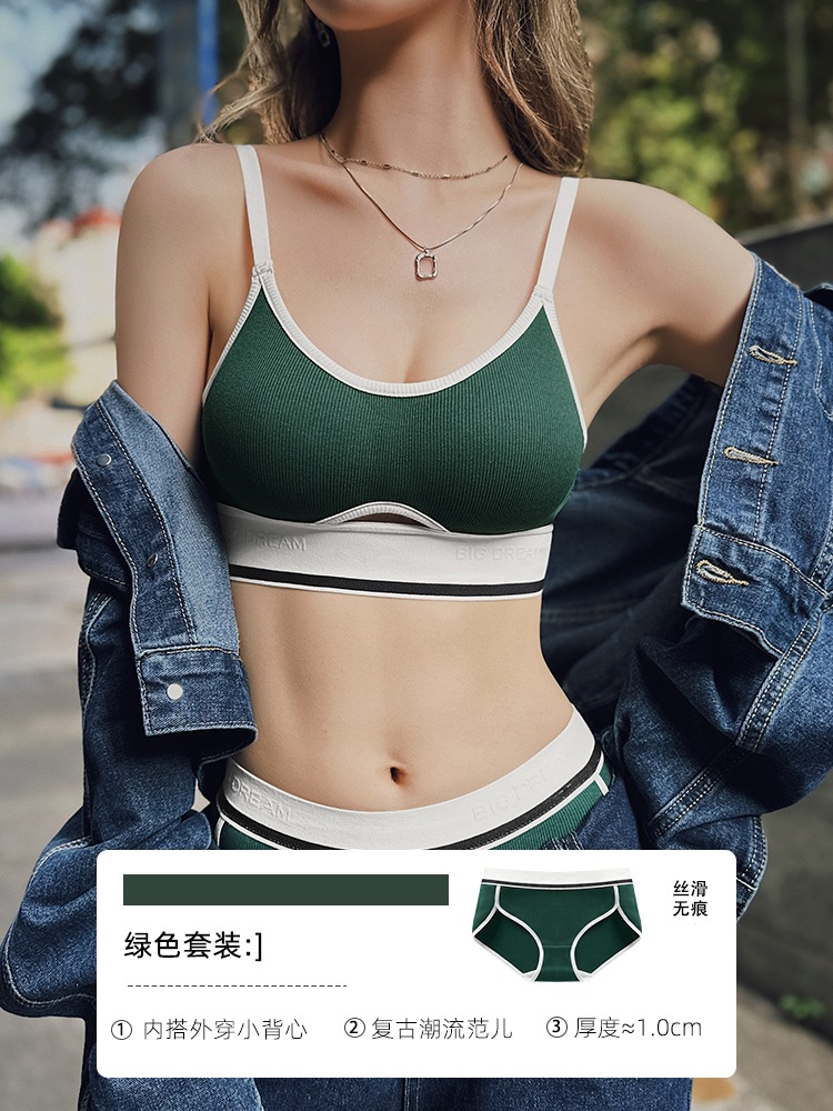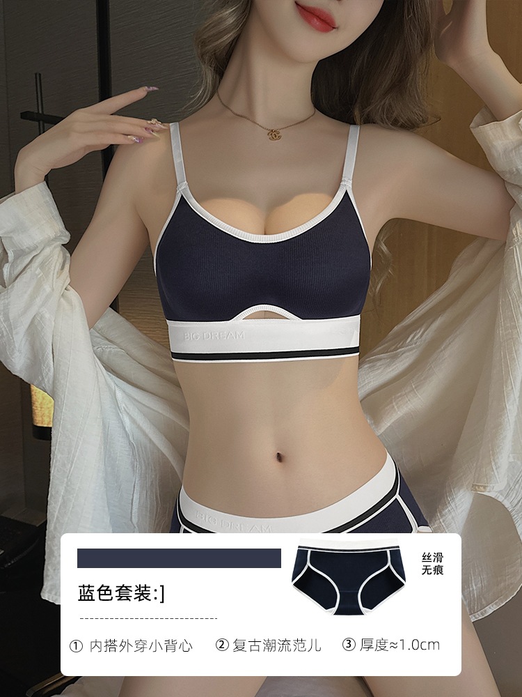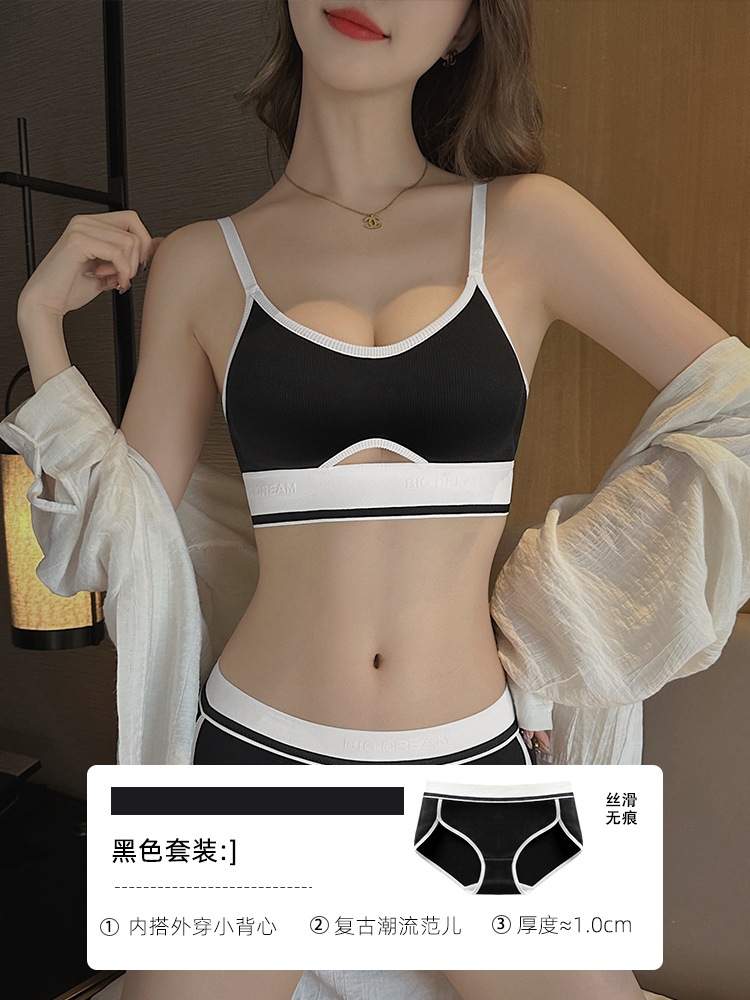 Sports bra for women with small breasts that can be worn outside without wires, anti-sagging bra set, foreign trade bra summer