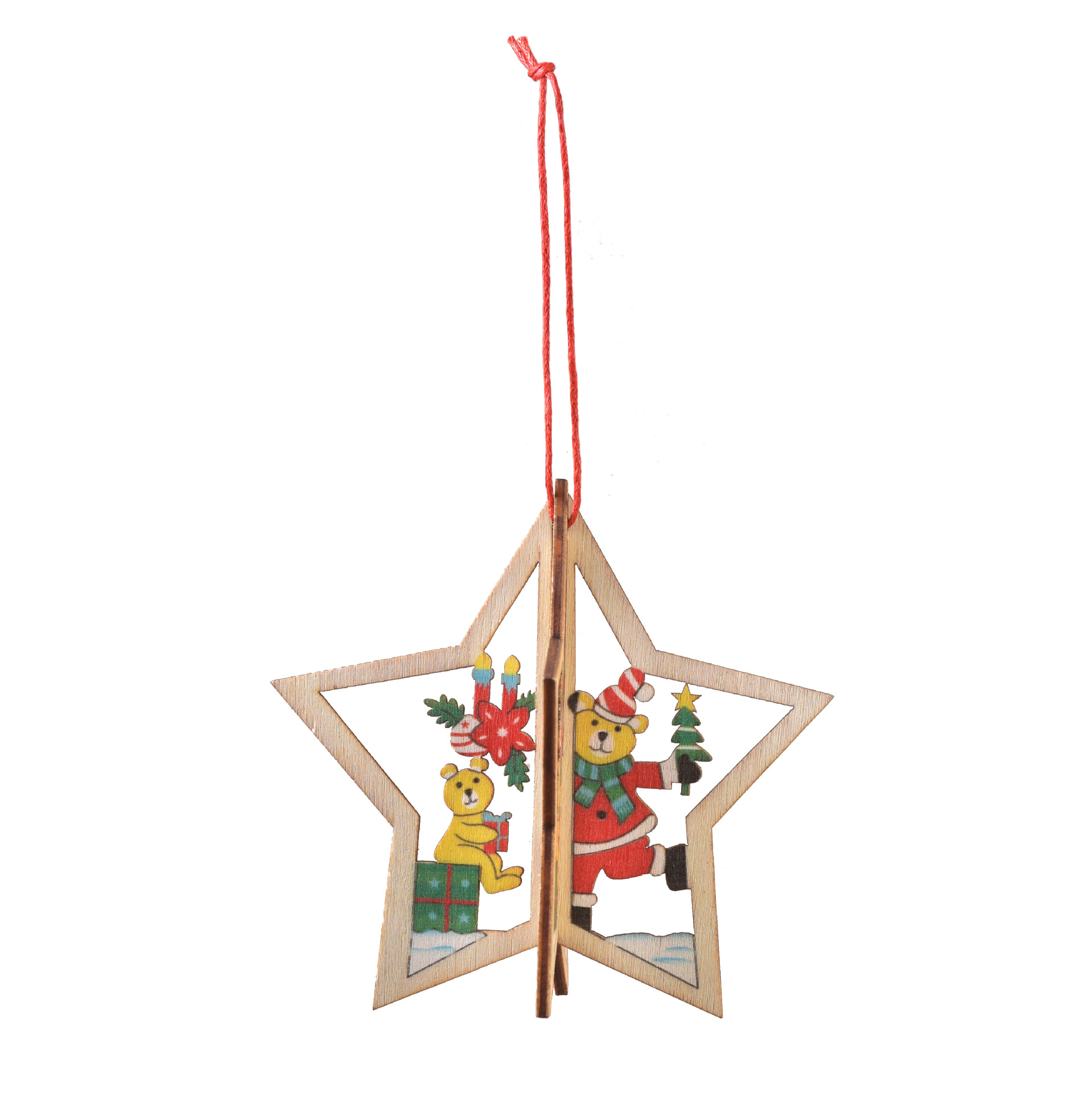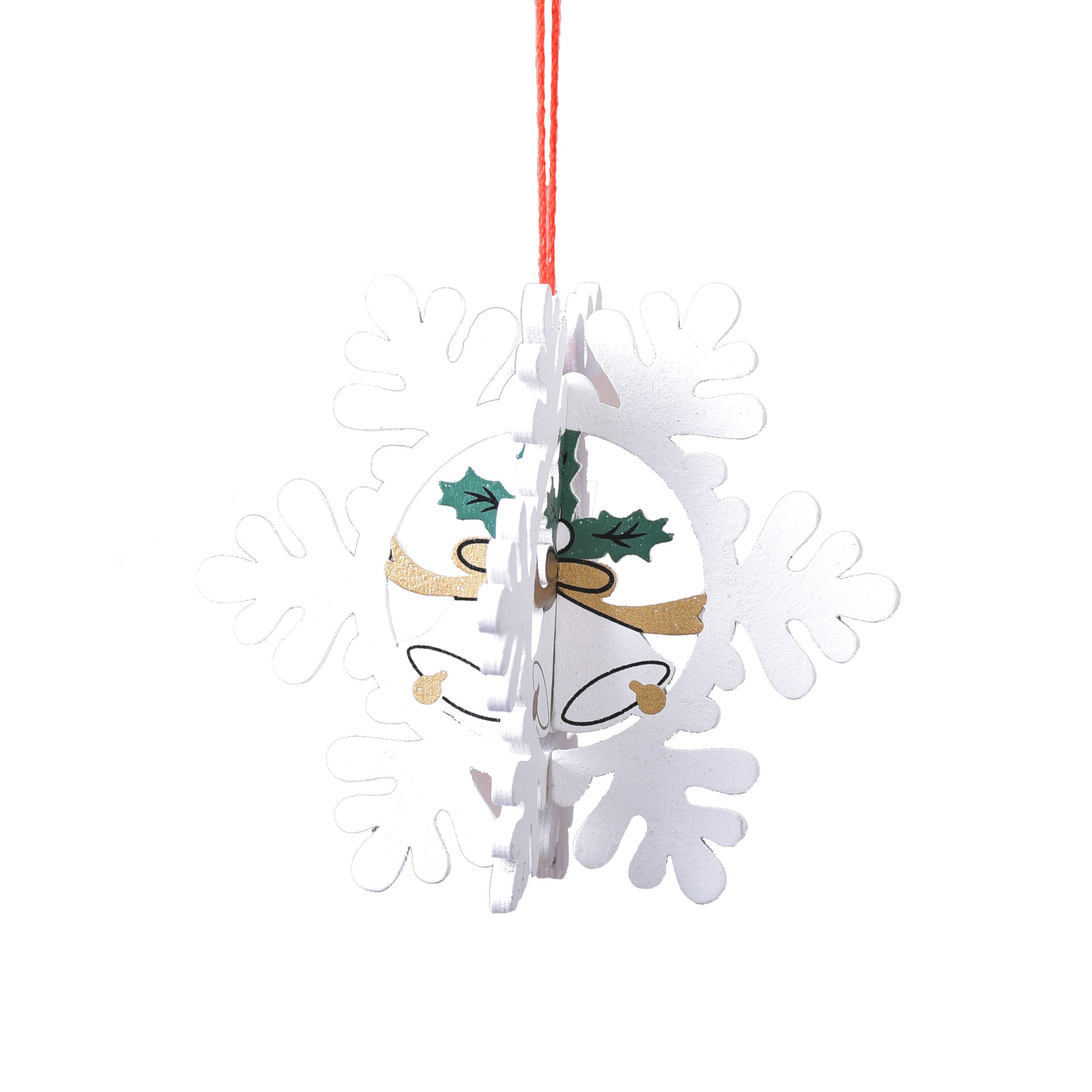 Supplied by the manufacturer: Christmas decoration wooden laser cut hollow 3D snowflake hanging ornaments Christmas tree bell hanging gifts