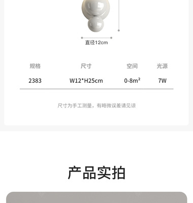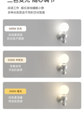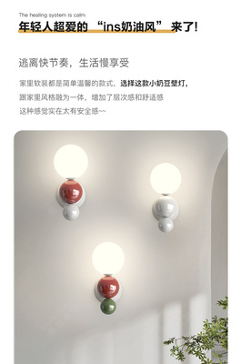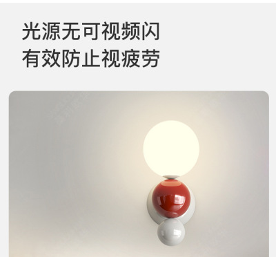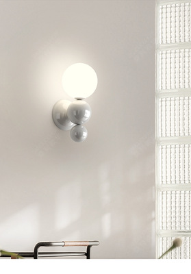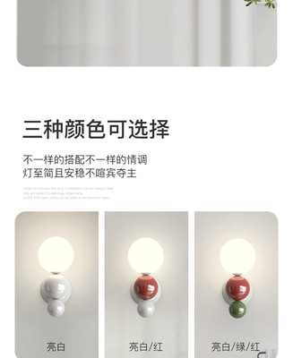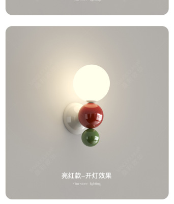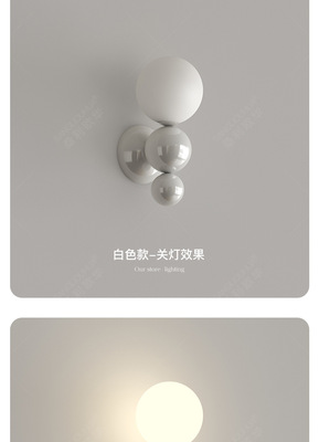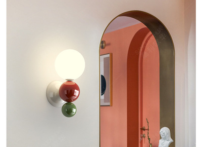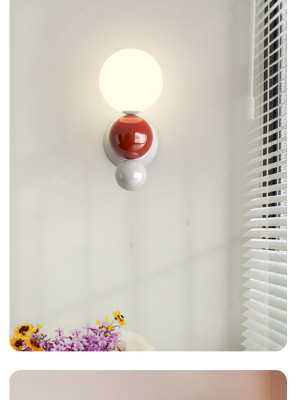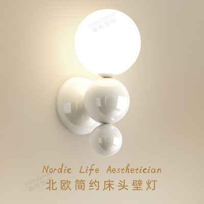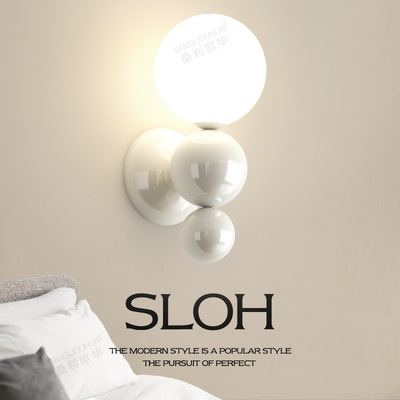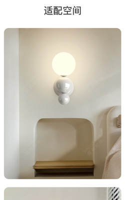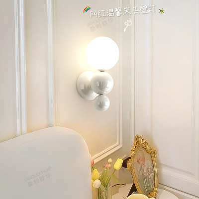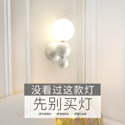 French cream-style master bedroom bedside wall lamp with pearl-shaped white contrast wall lamp, stairway hallway small wall lamp