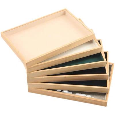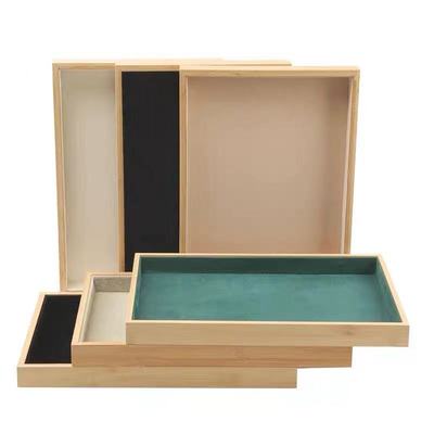 Bamboo and wood empty tray with black velvet
