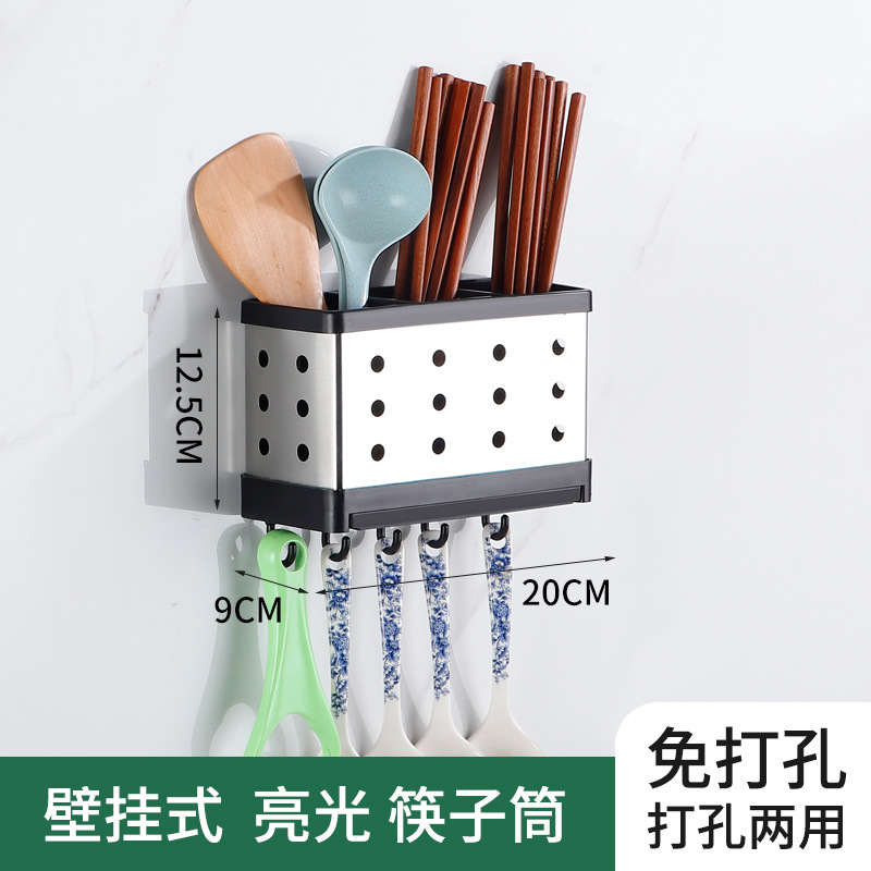 No-drilling Chopstick Holder Kitchen Storage Rack Stainless Steel Chopstick Holder Pot Spatula Wall Mount Storage Rack One Piece Drop Shipping