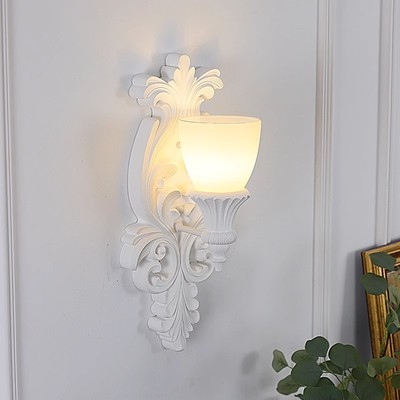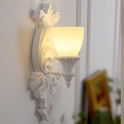 French-style plaster wall lamp, luxury carved corridor lamp, retro artistic cream-style bedroom bedside creative lighting casa