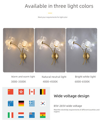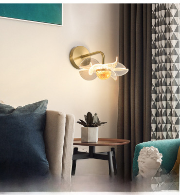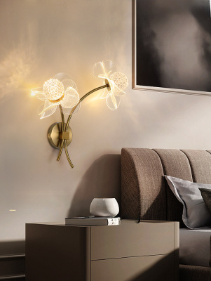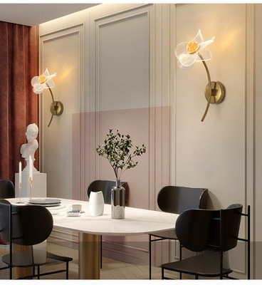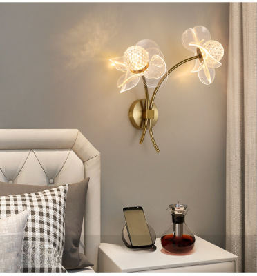 Light luxury minimalist creative LED internet-celebrity wall lamp bedroom bedside wall lamp living room flower acrylic TV wall light