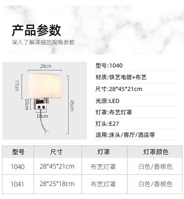 臥室床頭led閱燈壁燈 室內創意酒店賓館床頭燈 美式簡約壁燈
