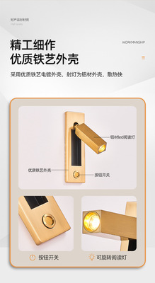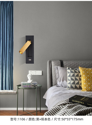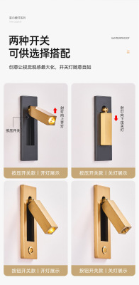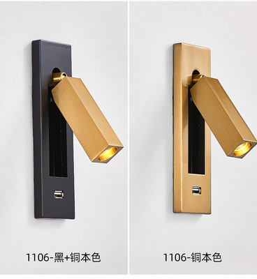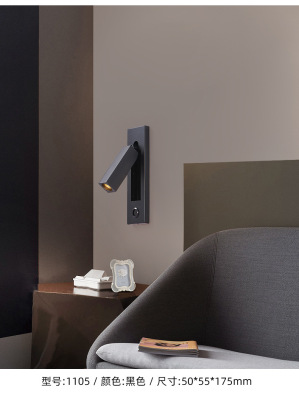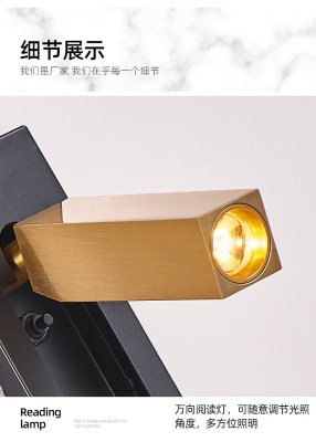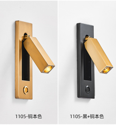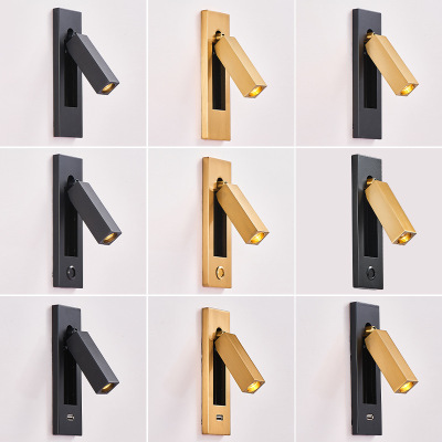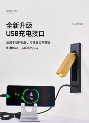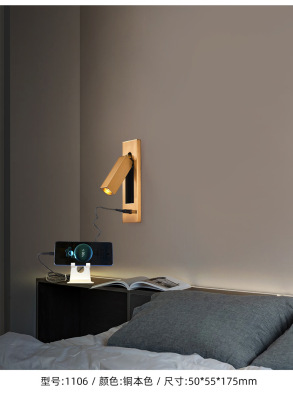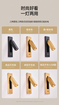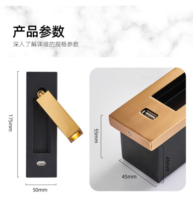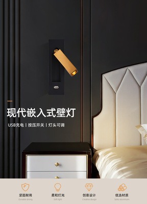 Bedside built-in wall lamp for hotel, minimalist indoor bedroom, American style with switch and USB, built-in wall lamp for inn and hotel