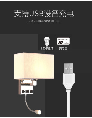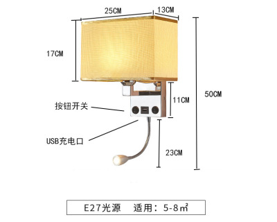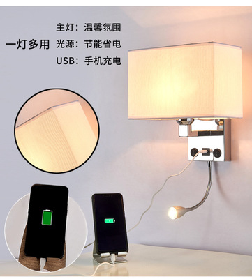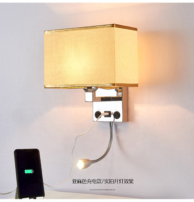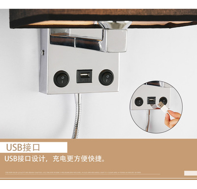 臥室床頭壁燈帶USB充電口北歐室內壁燈 美式酒店床頭閱讀燈