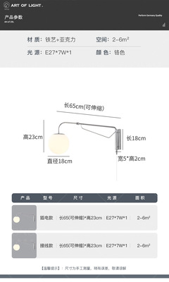 Long Arm Wall Lamp Bauhaus Light Luxury Creative Internet Celebrity Foldable Bedside Lamp New Design Extendable Background Wall Lamp