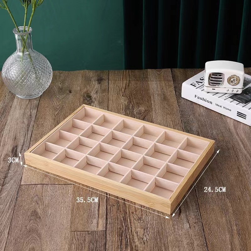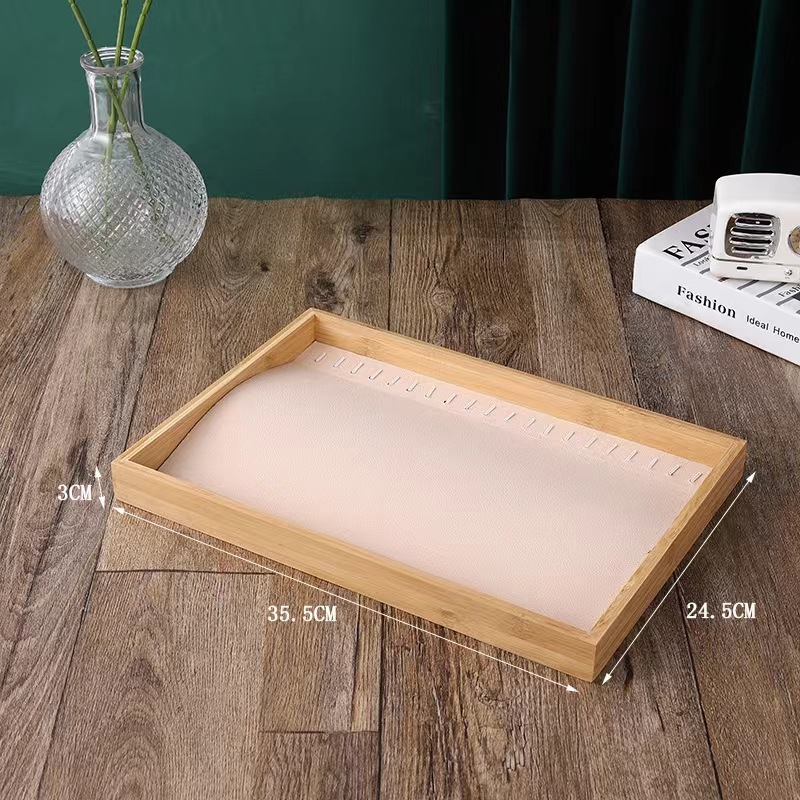 原松木珠粒絨首飾展示托盤戒指項鍊手鐲珠寶玉器直播間飾品收納盤
