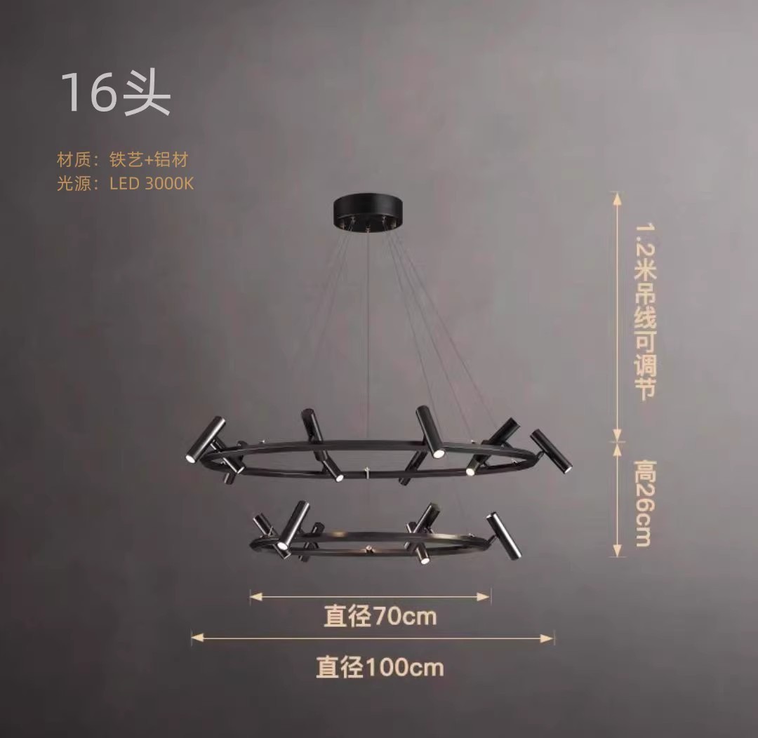 16 heads, diameter 100+70cm, rotatable lampshade