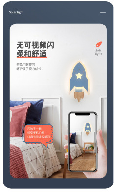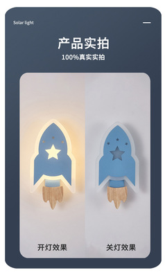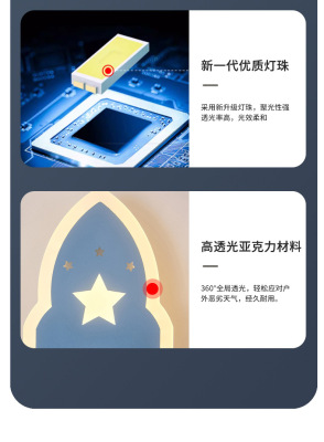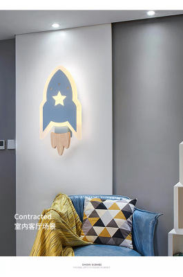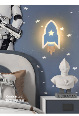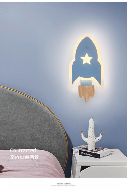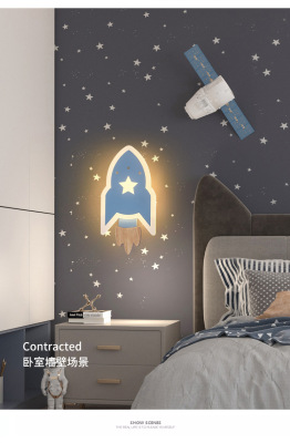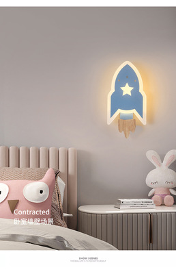 兒童房燈男女孩現代簡約北歐創意裝飾過道書房床頭燈星星火箭壁燈