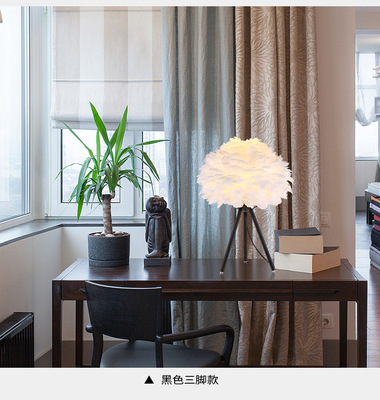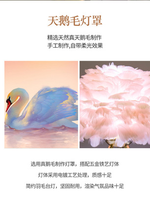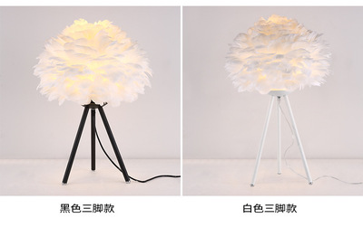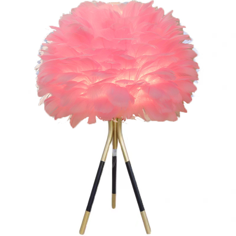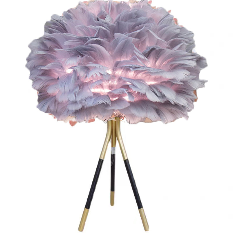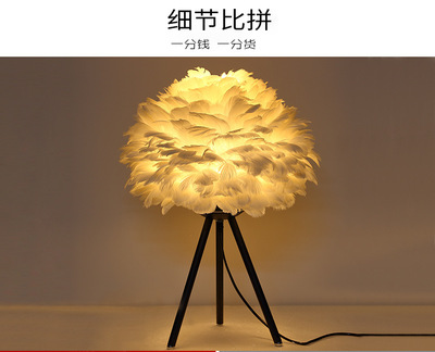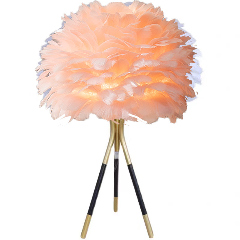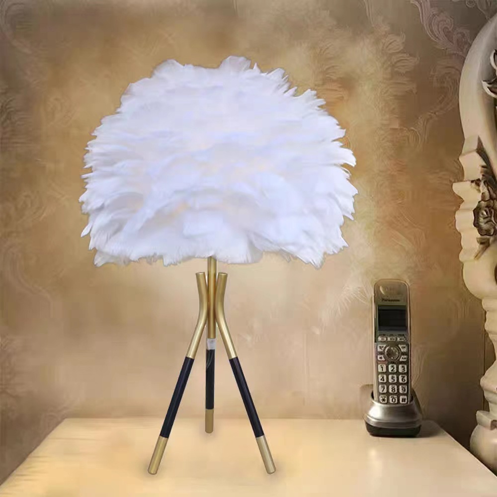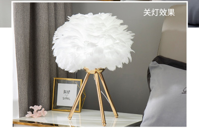 Cross-border feather bedside lamp for bedroom, luxury and cute girl night light, minimalist modern small night light, creative decorative lamp for wedding room
