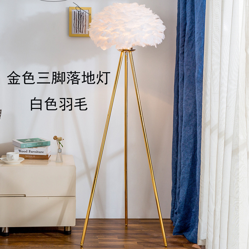 Golden three-legged floor lamp (white feather) 50*150cm