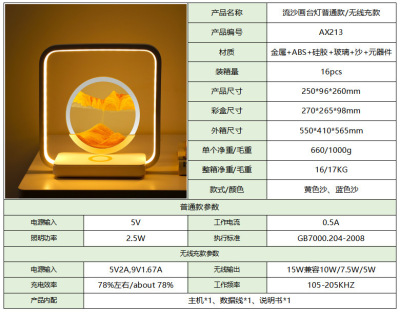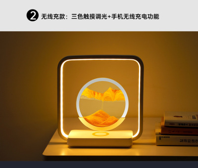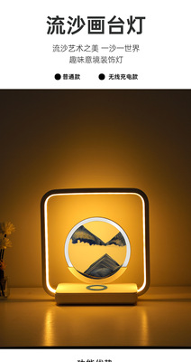 Flow Sand Painting Sand Hour Glass Wireless Charging Desk Lamp Luxury and Advanced Living Room Decoration Bedroom Bedside Lamp Chinese Night Lamp