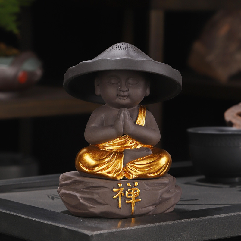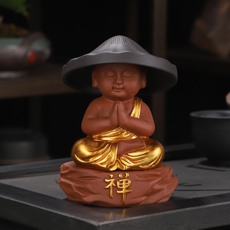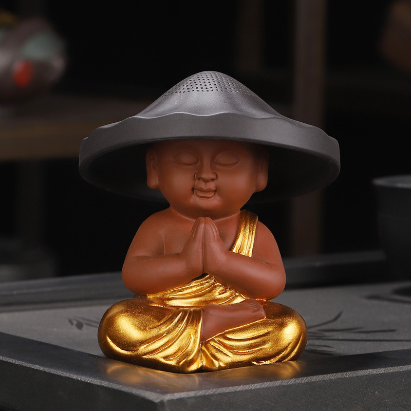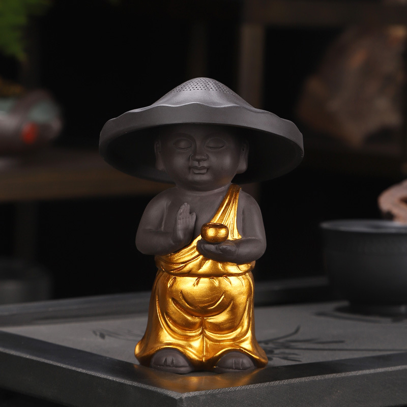 Zhu Ni gold-decorated meditation incense burner for praying little monk tea漏