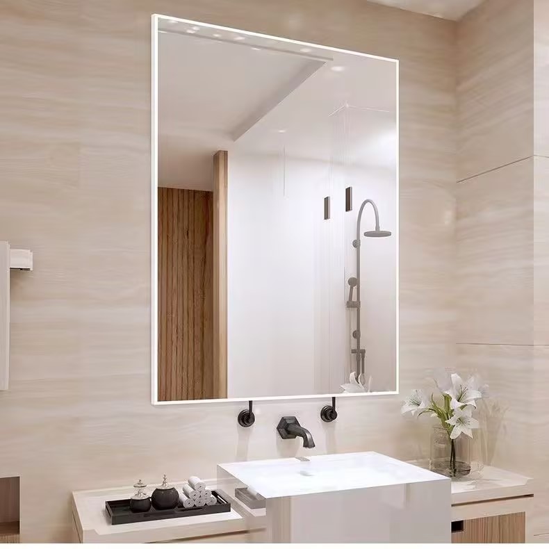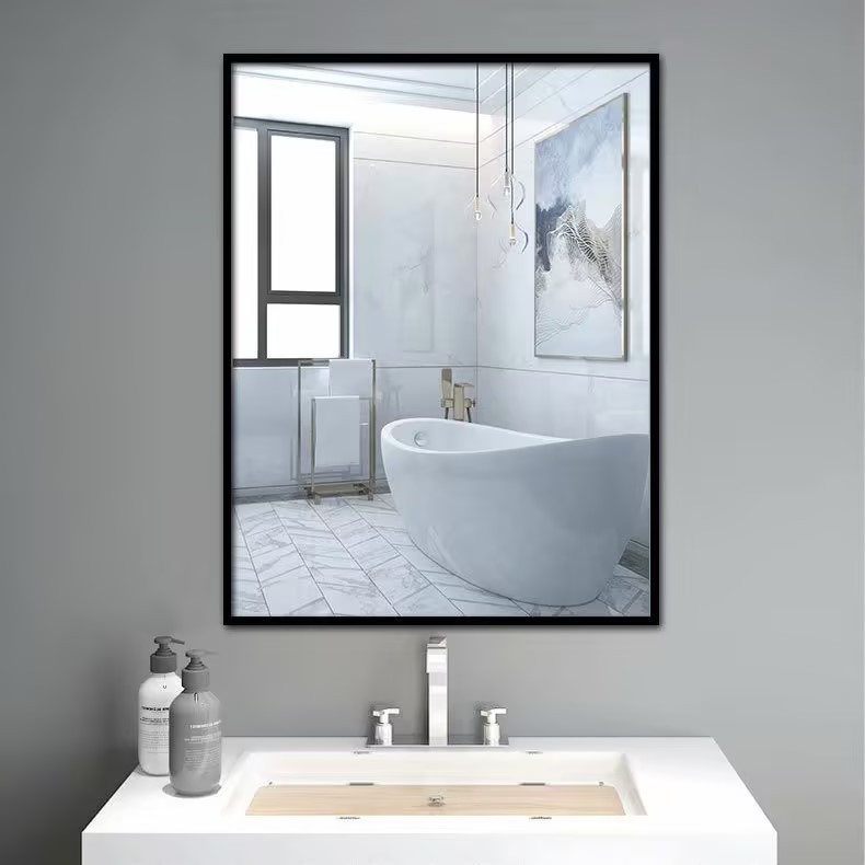廁所浴室鏡帶邊框玻璃鏡 現代簡約輕奢貼牆自粘衛生間鏡子壁掛