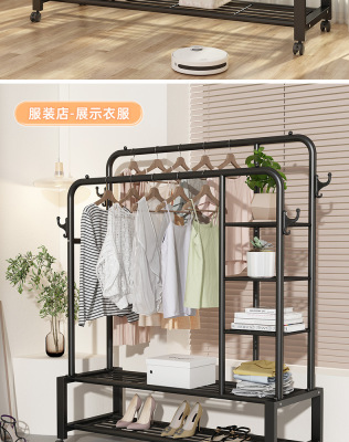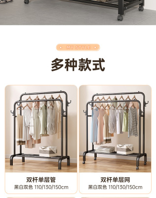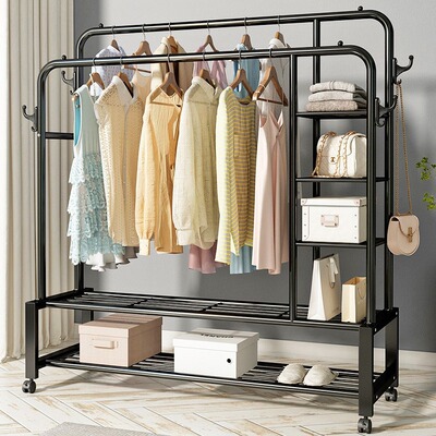 晾衣架落地式家用可移動多層置物掛衣架陽台鐵藝衣物晾曬架子批發