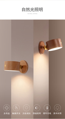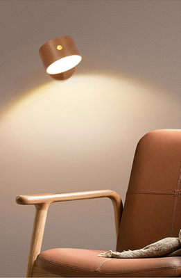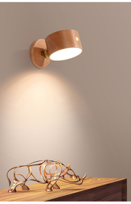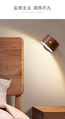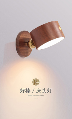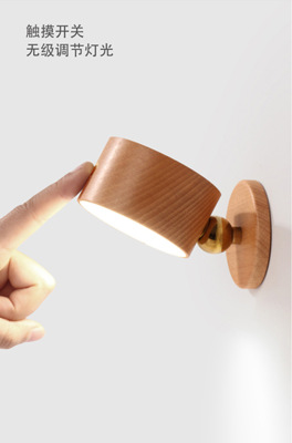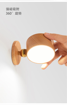 新品木質家居臥室床頭壁燈USB可充電磁吸轉向樓道過道燈櫸木