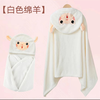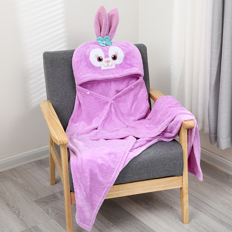 Coral Fleece Children's Hooded Robe with Cape Bath Towel, Unisex Cartoon Bathing and Swimming Towel, Absorbent Bath Suit