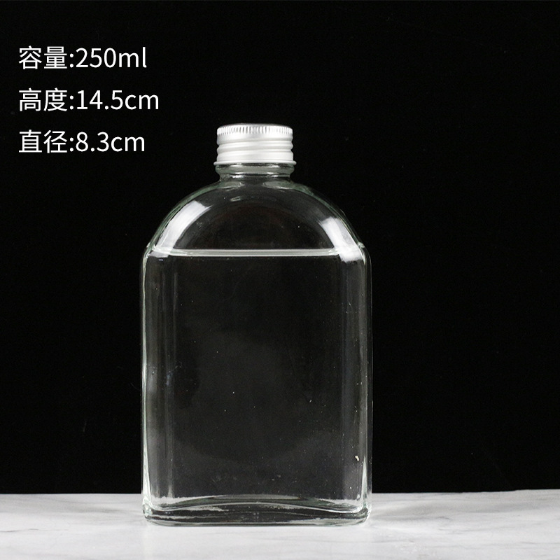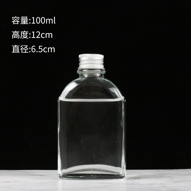Cross-border slanted shoulder small wine bottle wholesale glass self-made beverage fruit juice sealed cold extraction coffee commercial milk tea bottle square bottle